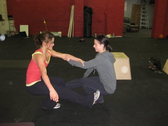 1. Rubber band assistance overhead – attach the rubber band to the pullup bar. Loop both arms through the band so it sits your shoulders behind your neck. Lower down under control and then stand back up.