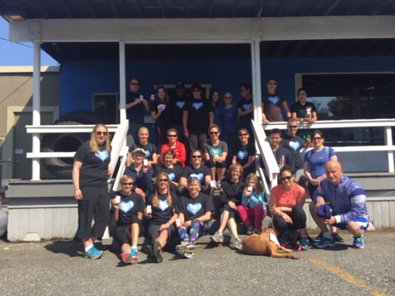 Thanks to everyone who came out to support the flash mob workout that took place this past Saturday (105 days prior to the swim). We went around to high traffic areas doing squats, lunges, jacks, box jumps and pushups. We were able to convince a few people to join along the way 🙂 The goal
