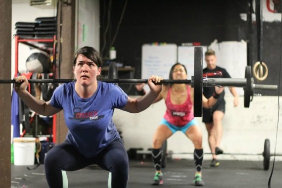 The wod portion is designed to work on your muscular endurance and lung capacity. It is a short AMRAP, so please chose a weight that is a moderate weight for you and not close to your 1RM. To save your grip and make it easier to string the hang power cleans together, use the HOOK GRIP! Please make sure that you are using your powerful hips to elevate the barbell on the hang power clean, not your back. To do this, slide the bar down to mid-thigh and stay over the bar as long as possible to recruit the posterior chain in the movement. If you are noticing your back getting sore, take a rest and get the Coach to take a look at your form.