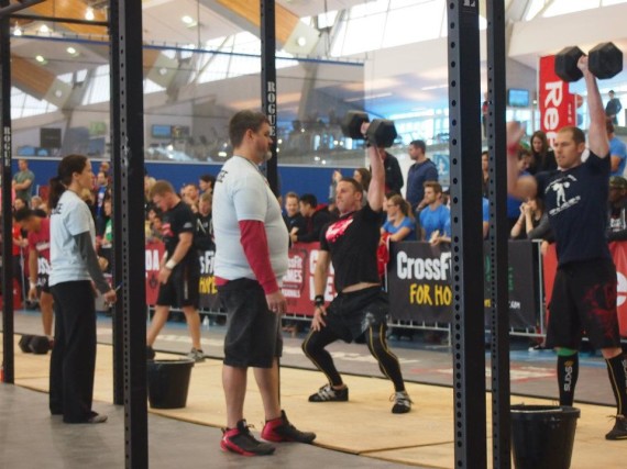 Today’s workout incorporates another movement that you do not see regularly in the programming. This movement came up at Regionals 2 years ago, the dumbbell snatch. This movement is different than the kettlebell snatch which you have seen more often in the program. The biggest difference between the movements is the path that the bell travels up and overhead. Take a look at the video below for a tutorial on how to the do the dumbbell snatch. It is a long one, so grab some popcorn and sit back and relax.