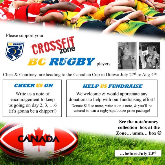 Support Cheri and Courtney by writing some encouraging words to help them crush it at the Canadian Cup July 27th to August 4th. There will be a box at the front desk to leave your motivational quotes. You all know what it is like to fight through a hard chipper, the mental strength that is required. Let’s come up with some encouraging motivational quotes that will help Cheri and Courtney push through their Rugby chipper!