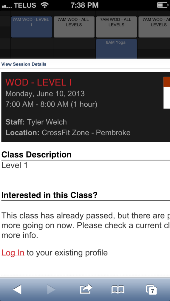 - Click on the class and a window will pop up with details on the class – Coach, time, level and location